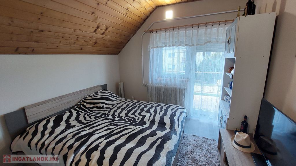 A tetőtérben három hálószobát és egy gardróbot alakítottak ki. A zuhanyzó és mellékhelyiség itt is külön helyiségben van. A földszinten ajtóval zárható a lépcsőfeljáró.