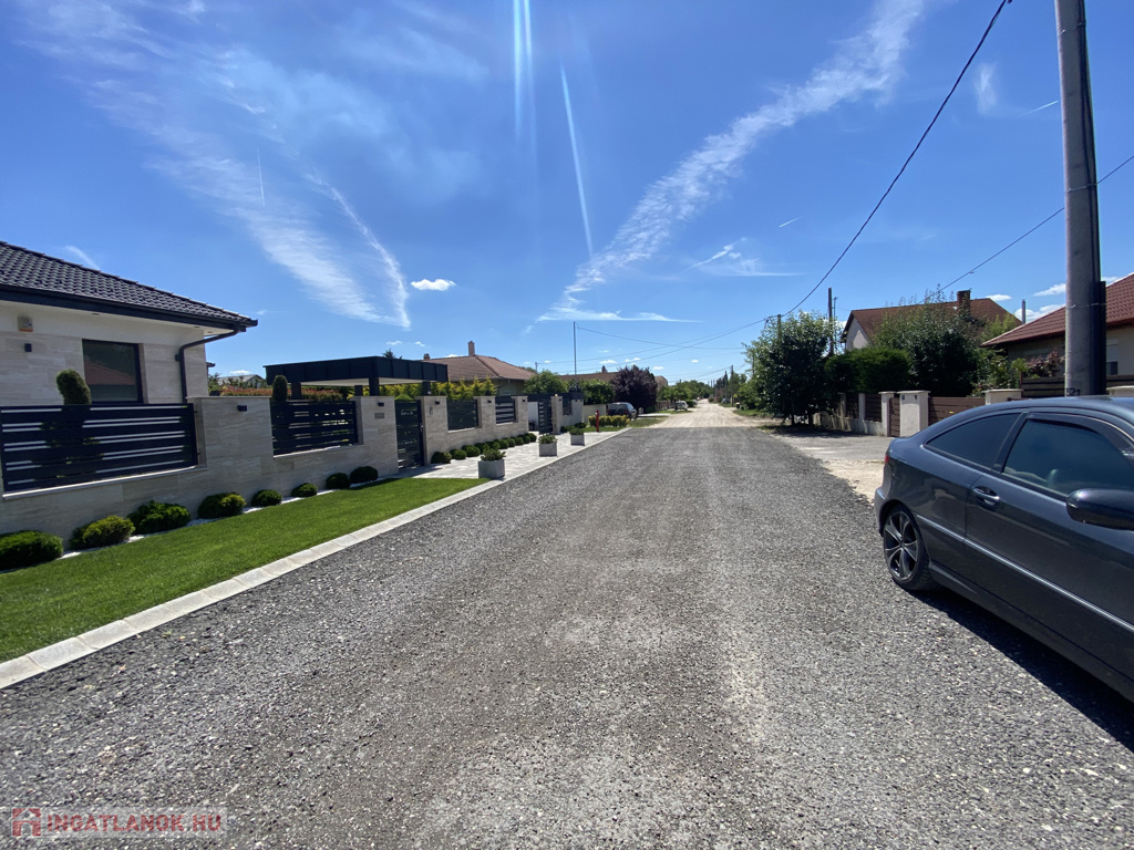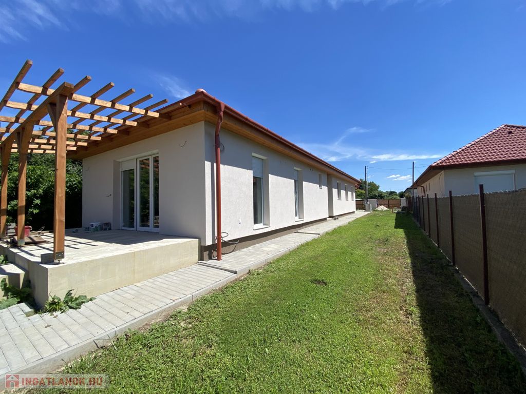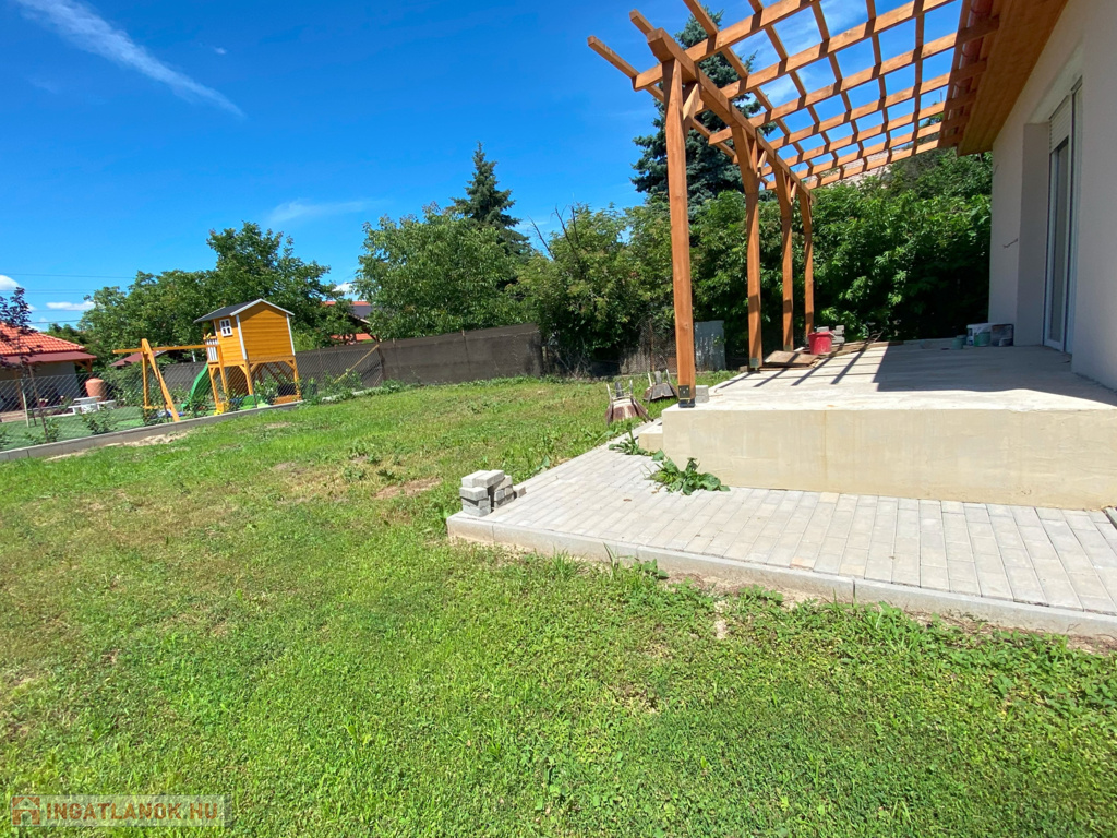 A brand new family house is for sale in Érd, which was built in 2024 from quality materials and meets all needs. House features This 99 sqm, living room + 3-bedroom house is made with modern design and premium materials. The walls are built from 30 cm Porotherm bricks and 15 cm dryvit insulation, while the windows and doors are made of plastic. Heating is provided by a heat pump with underfloor heating, so you will be pleasantly warm even in winter. The house has a 25 sqm garage and a 16 sqm pergola terrace, where you can enjoy your free time. An alarm ensures security and air conditioning ensures comfort. Plot and location The house, located on a 600 sqm plot, is fenced all around, with a plinth and wooden fence on the street front. The electric gate has already been prepared, so entry will be even more convenient. The plot has also been filled with farmland, making it ideal for gardening or creating a playground for children. The property is located just 20 minutes from Budapest, on a quiet street, where a school, kindergarten, shopping facilities and a bus stop are within a few minutes' walk. Financial options Loans and Credits are available, and we can help with all official procedures! The house can be reserved now with a 20% deposit. If you are looking for a home in a quiet, yet easily accessible location that you can live in first, then this house could be the perfect choice for you! Don't miss this great opportunity, feel free to call to make an appointment, and let's take a look together!