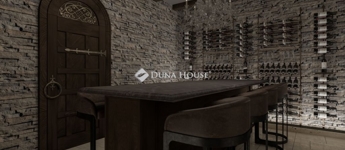 - Alsó szint: wellness és szórakozás helyszínei külön gondnoki szoba fürdőszoba WC-vel, gépészet, fitneszterem, mozi szoba, közlekedő, raktár, tároló, tágas szoba, borospince, szauna, valamint garázs