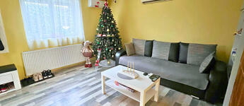 Az ingatlan központi helysége egy praktikusan kialakított, részben szeparált amerikai konyhás, klimatizált nappali, amely dk.-i irányba tekint. A térelválasztó falban kialakításra került egy cserépkályha, amely kellemes és meleg hangulatot kölcsönöz a térnek.
