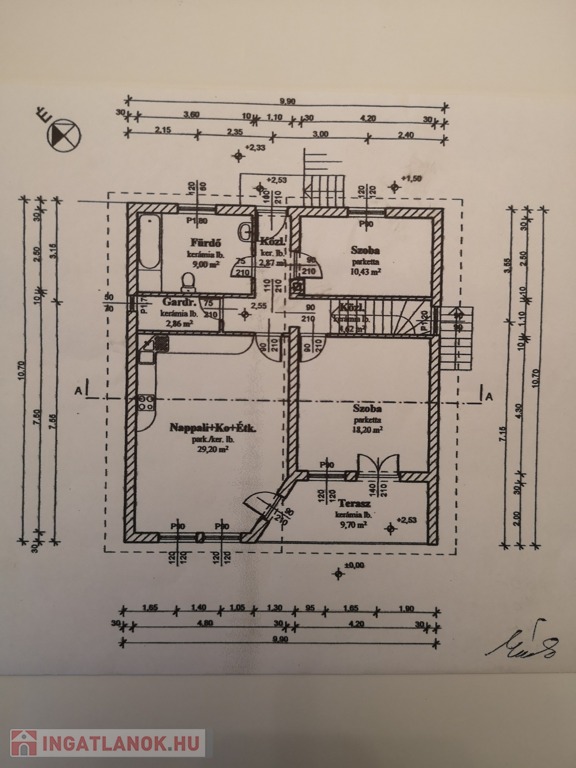 A három szintes, összesen 235 nm-es, két külön bejáratú lakásból álló ház 666 nm-es telken fekszik, főúthoz közeli csendes mellékutcában.