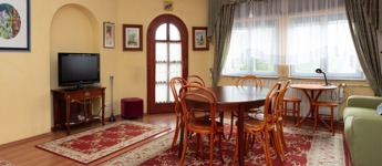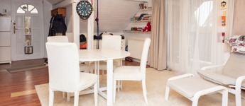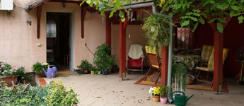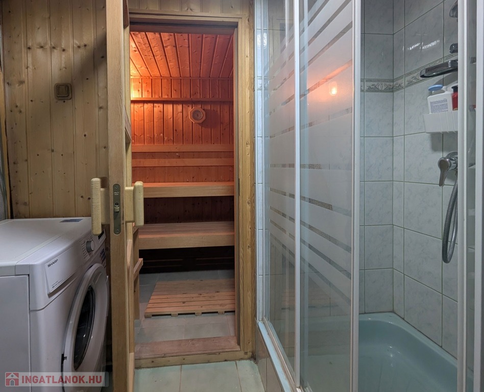Ott egy jó hangulatú szobába érkezünk, mely egy üveges előtérhez/télikerthez csatlakozik, egy háló, kis konyha, fürdőszoba, valamint egy finn szauna fogad minket!