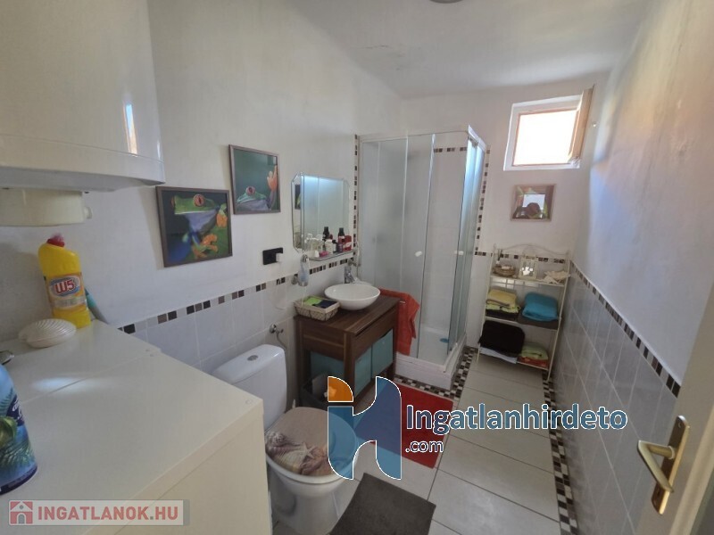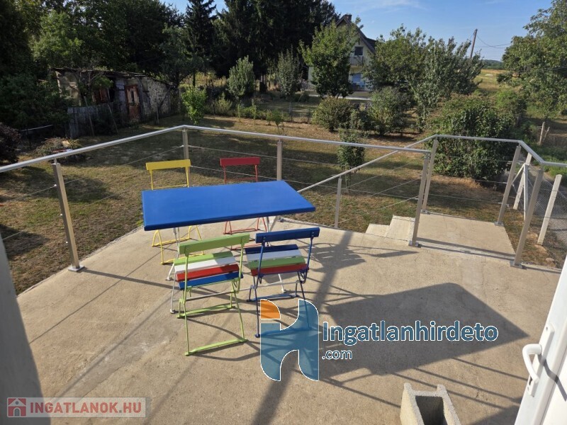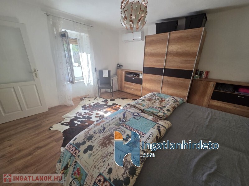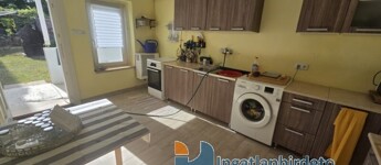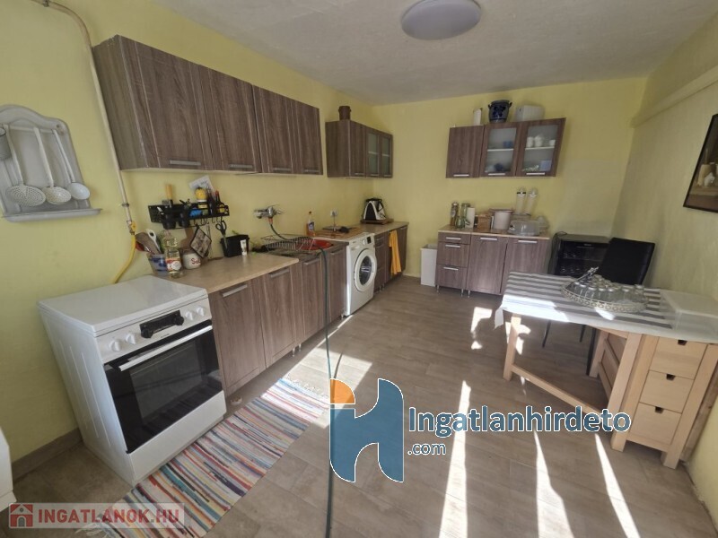 Elhelyezkedése: Belterület Tájolása: Dél-nyugai tájolású Állapota: Használt - felújított Komfort besorolása: összkomfortos Építési éve: 1930 Alapterülete: 76 m2 Telekterülete: 906 m2 Szobák száma: 2 + 1 szoba Felújított: Felújított Felújítás éve: 2022 Felújítás során elvégzett munkák: Festés, Villanyrendszer csere, Vízrendszer csere, Csempe csere, Járólap csere, Parketta csere, Fűrdőszobai szaniterek cseréje, Utólagos vízszigetelés, Tetőfelújítás, Tetőszigetelés, Nyílászárók cseréje, Hőszigetelt nyílászárók beépítése Közművek: Gáz, Víz, Villany, Csatorna Gázellátás: Vezetékes Vízellátás: Vezetékes víz Melegvíz-ellátás: Villanybojler Áramellátás: 230V/380 V Fűtés módja: Egyéb Fűtés típusa: Egyéb Homlokzat állapot: Jó Építési mód: Tégla, Kő, Vályog Tető formája: Magas Tető anyaga: Cserép Parkolási lehetőség: Telken Kilátás: Utcafronti kilátás Jellemzői: Csendes környék, Jó közlekedés, Redőny, Légkondicionáló, Udvari terasz, Kert, Kerítés, Zöldterület, Jó közbiztonság, Beépített tetőtér Energetikai besorolás: H Egyéb jellemzők: Terasz, Melléképület, Pince Tv, Internet: Kábeltévé, Internet Terhelések: Tehermentes ingatlan Eladásra vonatkozó információk: Az ár tartalmazza a teljes berendezést, Azonnal beköltözhető