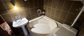 Emelet: 3 külön nyíló szoba, nappali, kádas fürdőszoba és külön mellékhelyiség.
