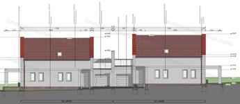 Az ikerház megbízható kivitelező munkájával készül utcafrontra merőlegesen. A hátsó ház már megtalálta boldog gazdáját, de az utcafronti még keresi azt.