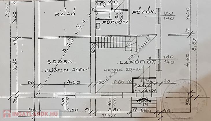 Emelet: 3 külön nyíló szoba, nappali, kádas fürdőszoba és külön mellékhelyiség.