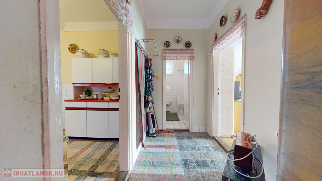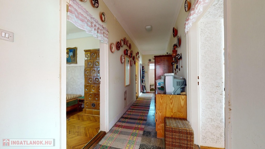 Az ingatlan megépítésében is különleges, hiszen egy kör alakú előszoba tartozik hozzá. Két bejárata van, az egyik az utca felől, a másik az udvar irányából, amely azért érdekes, mert a ház egyik legnagyobb helyiségén keresztül jutunk be magába a főépületbe.