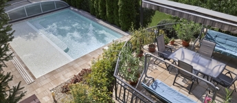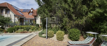 - 5 kW-Solaranlage auf der Garage und Solarpaneele am Haus zur Unterstützung der Poolheizung und der Warmwasserversorgung,