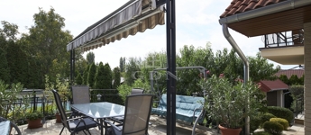 -garázson 5 KW-os napelem, a házra pedig napkollektorok kerültek felszerelésre, besegítve a medence fűtését és a készenléti melegvíz ellátását,