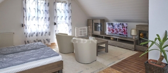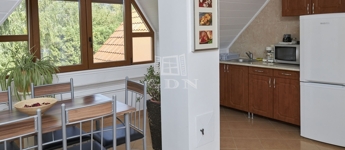 Az emeleti részen iroda, illetve vendégek fogadására alkalmas apartman lakás található, ami külön bejárattal is megközelíthető.