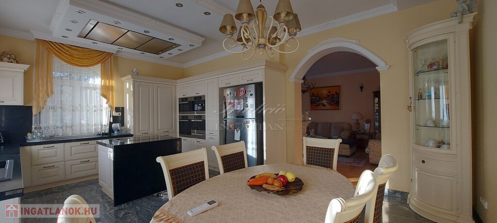 Győr-Kisbácsán nyugodt környezetben, 1331 m2-es intim-parkosított telken eladó egy 2000-ben kimagasló minőségben megépített, igényesen karbantartott, minden részletében átgondolt 175 m2 lakóterű, nappali és 3 szobás, étkező-konyhás klimatizált családi ház, amely kényelmet, biztonságot és luxust kínál egyben. Az épület alatti 145 m2-es pince kikapcsolódásra, sportolásra, hobbi célokra, rendezvények lebonyolítására kíválóan alkalmas.