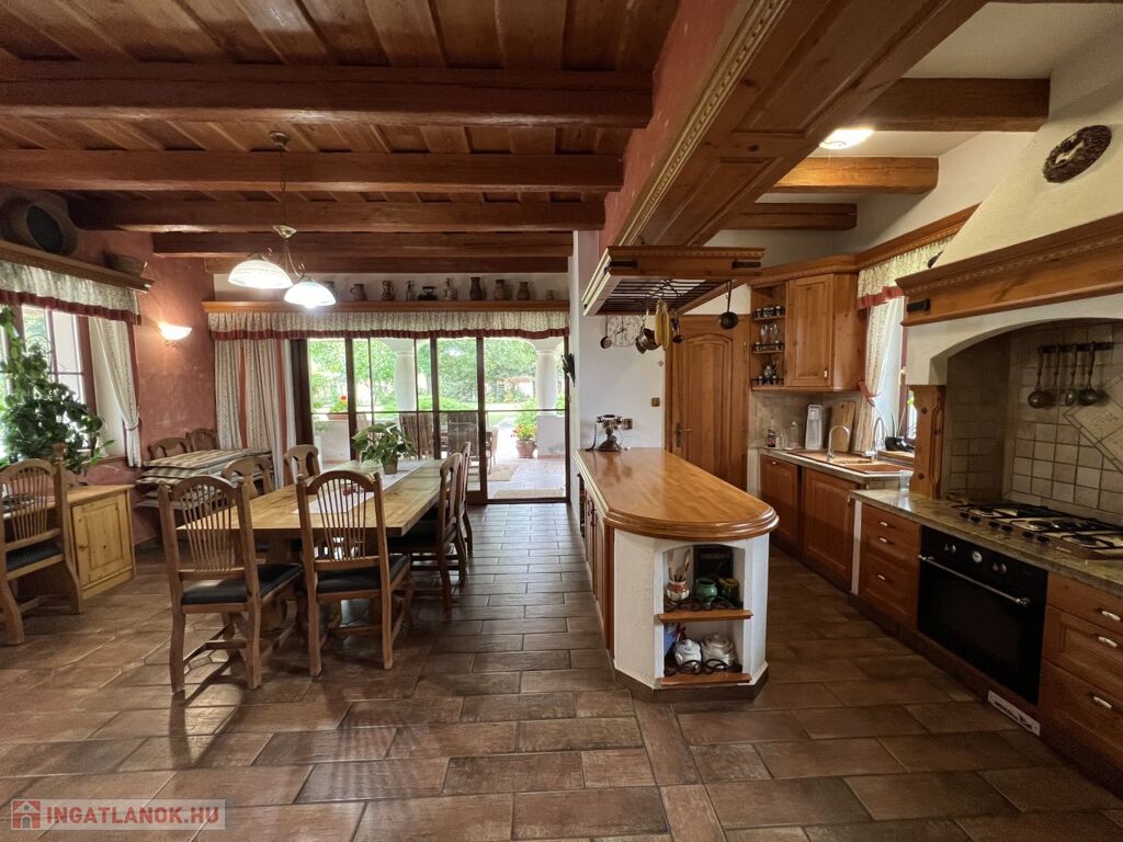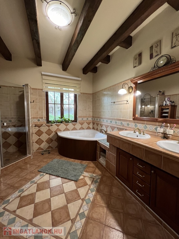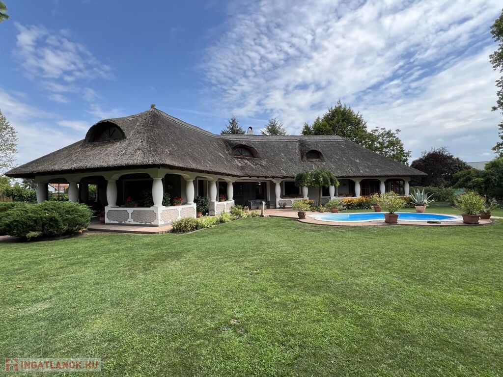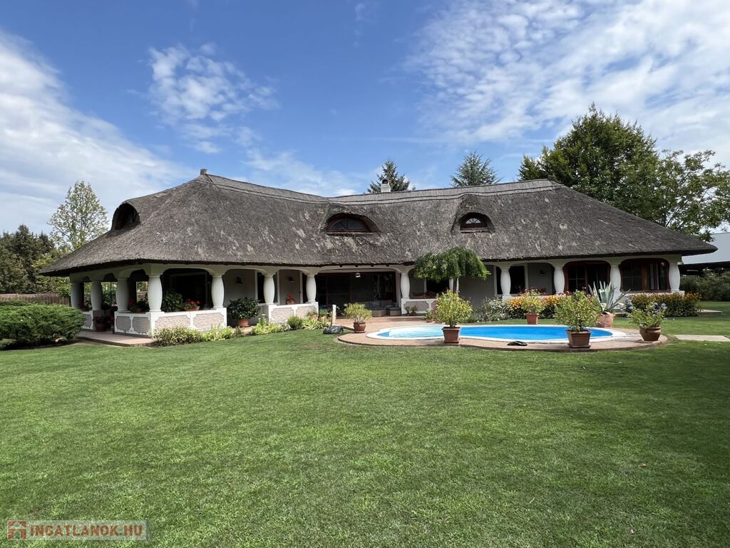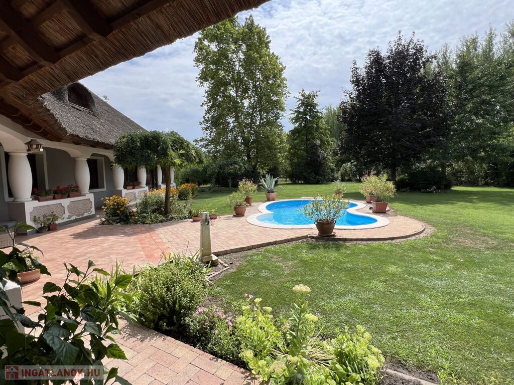 Győrladaméron zöldövezeti, természeti környezetben a Mosoni - Duna partján, 6039 m2-es, parkosított, automata öntözőrendszerrel ellátott, csendes telken, 2002 - ben épült, a meghitt, barátságos otthon melegét minden részletében magából árasztó, bruttó 333 nettó 200 m2-es, egyedi stílusban megtervezett és minőségi anyagokból kivitelezett, 3 szoba + nappalis, galériás, egyedülálló, medencés családi ház dupla garázzsal eladó.