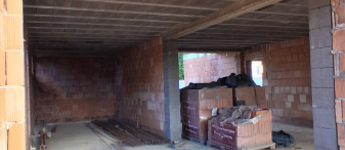 Az eredeti tervek szerint kétoldali tetőterasszal és középen nyeregtetővel épül, ennek köszönhetően a tetőtér járható, és akár tovább is bővíthető. A válaszfalakhoz szükséges tégla már rendelkezésre áll, így az építkezés folytatása azonnal megkezdhető.