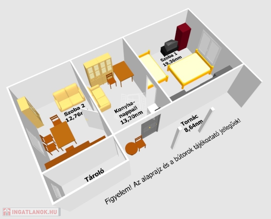 A kertes ház hasznos alapterülete 45,36nm, melyben található: