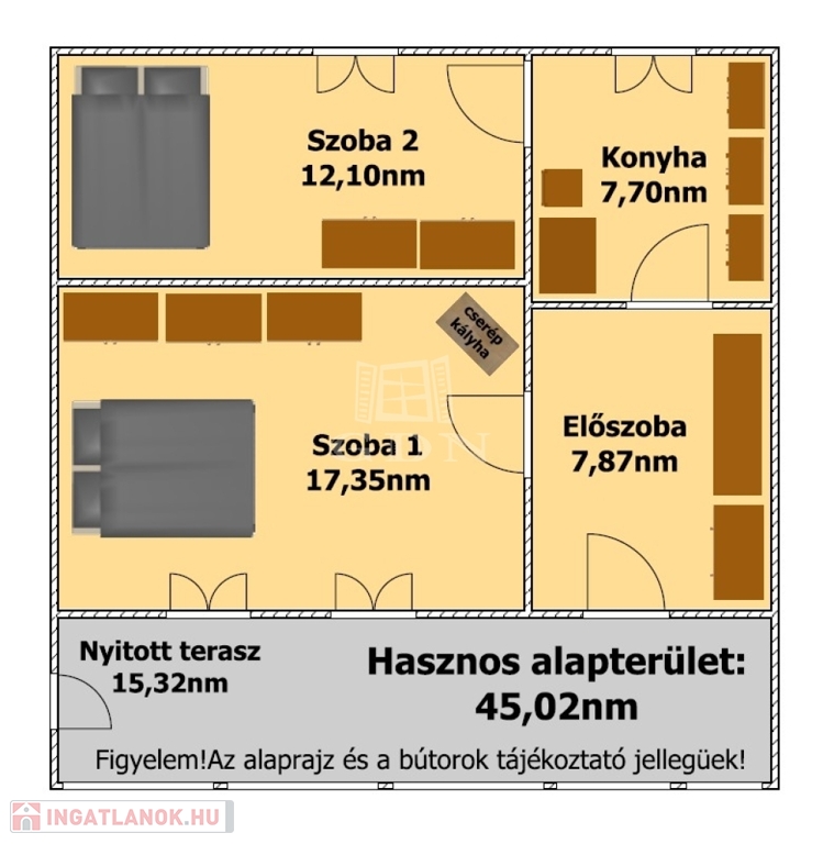 A baloldali épület hasznos alapterülete:45,02nm melyben található: