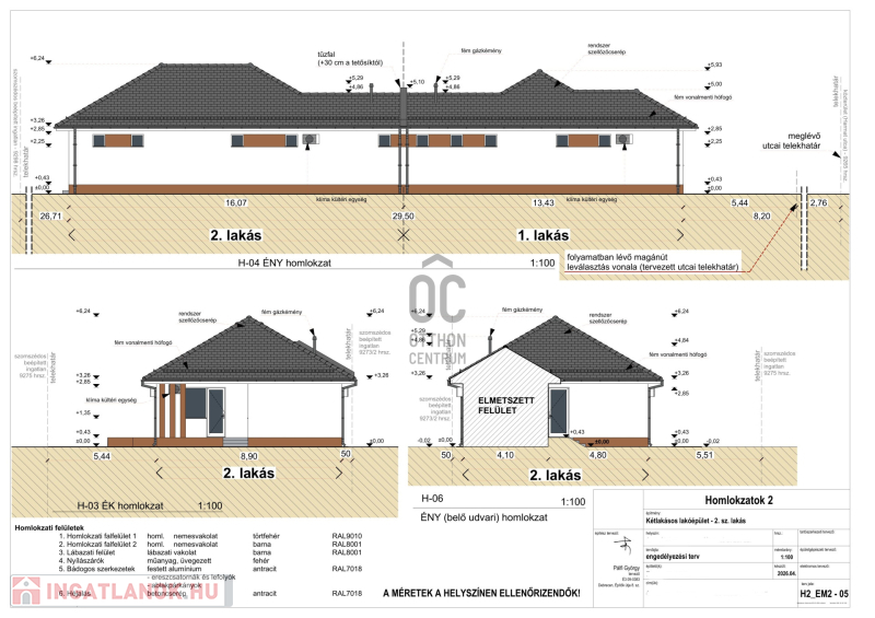 - az ikerházak egymás mögé épülnek, kazánházzal, gépészeti helyiséggel elválasztva a 2 épületet