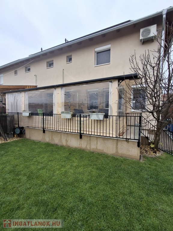 Kétszintes, 106 m²-es lakótérrel + hatalmas, 30 m²-es fedett terasszal + gondozott, 325 m²-es saját kerttel.