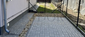 A 360 m²-es telekrészre motoros nagykapun keresztül juthatunk be, ahol a térkövezett beállón akár 3 autó is zártan parkolhat.