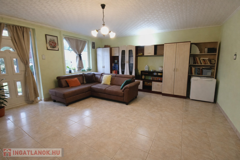 A telek első részén elhelyezkedő főépület 82 m² hasznos alapterületű, melyet egy 21 m²-es hangulatos terasz egészít ki. Az ingatlan beton alapra, Ytong téglából épült, műanyag nyílászárókkal felszerelt. Otthonának melegéről és a melegvíz ellátásról egy 2020-ban beépített Vaillant turbó cirkó kazán gondoskodik. Az elmúlt években az ingatlan több jelentős korszerűsítésen is átesett: a tető új, elegáns antracit szürke cserepeslemez fedést kapott, emellett 10 cm üveggyapot mennyezetszigetelés is kialakításra került a jobb energiahatékonyság érdekében. Ekkor készült el a teljes körű ereszcsatorna-rendszer, valamint a terasz teljes újjáépítése is. A fürdőszoba szintén teljes felújításon esett át, mely során a vízvezetékek, burkolatok és csempék is megújultak. A ház egyik nagy előnye, hogy a tágas nappali/szoba kialakításának köszönhetően igény esetén könnyedén két külön fél szobává alakítható, így az alaprajz rugalmasan igazítható a család igényeihez.