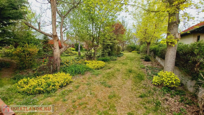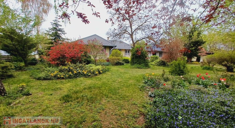 A gyönyörűen parkosított kert öntözéséről saját fúrt kút gondoskodik, amely nagy segítséget jelent a kert folyamatos gondozásában. A telken továbbá két tárolóhelyiség, valamint egy fedett kocsibeálló is helyet kapott, tovább növelve az ingatlan praktikusságát.