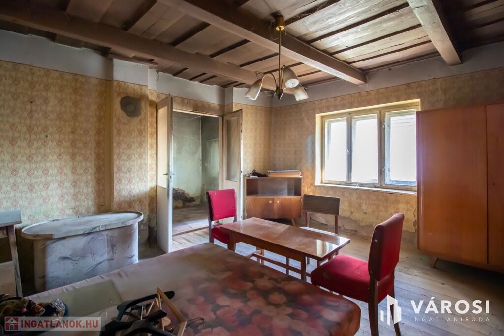 Az 50-es években épült, vegyes falazatú házban 2 szoba, konyha, spájz található. A ház tovább bővíthető egy belső udvar felé néző, napos nappalival, hiszen a padlásfeljáró és a tároló falazata ugyanolyan mint a szobáké, csak az átjárást kell megoldani hozzá. Az udvarban egyéb gazdálkodásra is alkalmas épületek és melléképületek is találhatók. Családi háznak, vagy nyaralónak is ideális.
