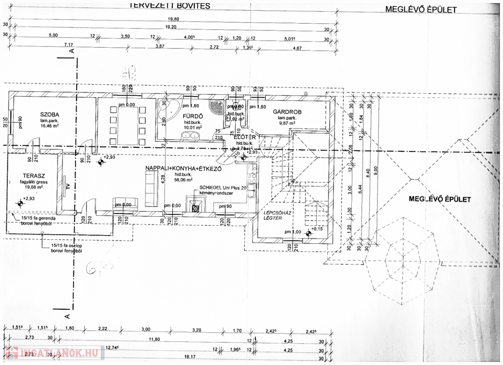 Az első épület az 1980-as években épült téglából ( klasszikus kádár kocka), melyet 2015-ben mélységében felújítottak ( komplett tetőcsere, nyílászárócsere, homlokzati dryvit és tetőszigetelés, teljesen új gépészet, és új hideg-meleg burkolóanyagok). Továbbá az épülethez szintén 2015-ben hozzáépítésre került egy kétszintes ytong szerkezetű épület, mely további 300 nm hasznos lakrészt biztosít.