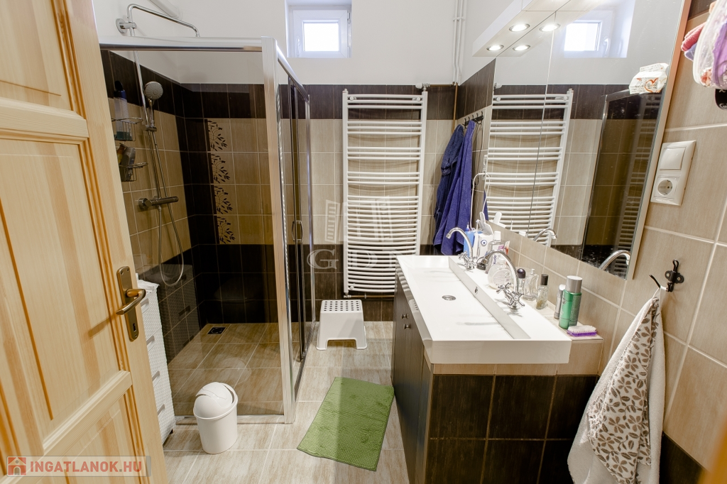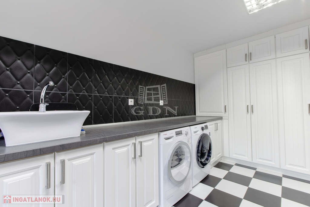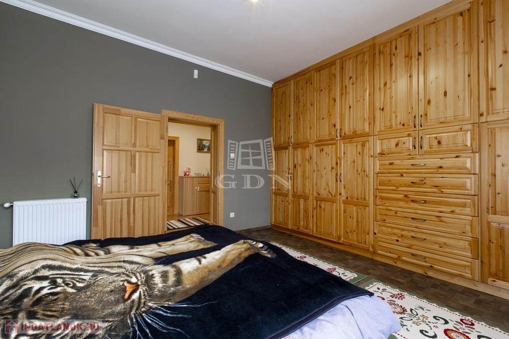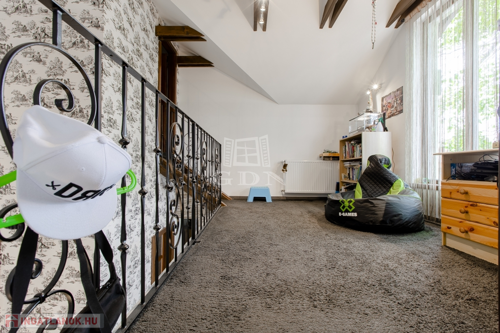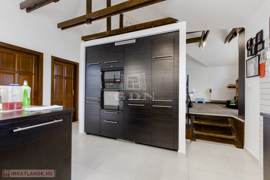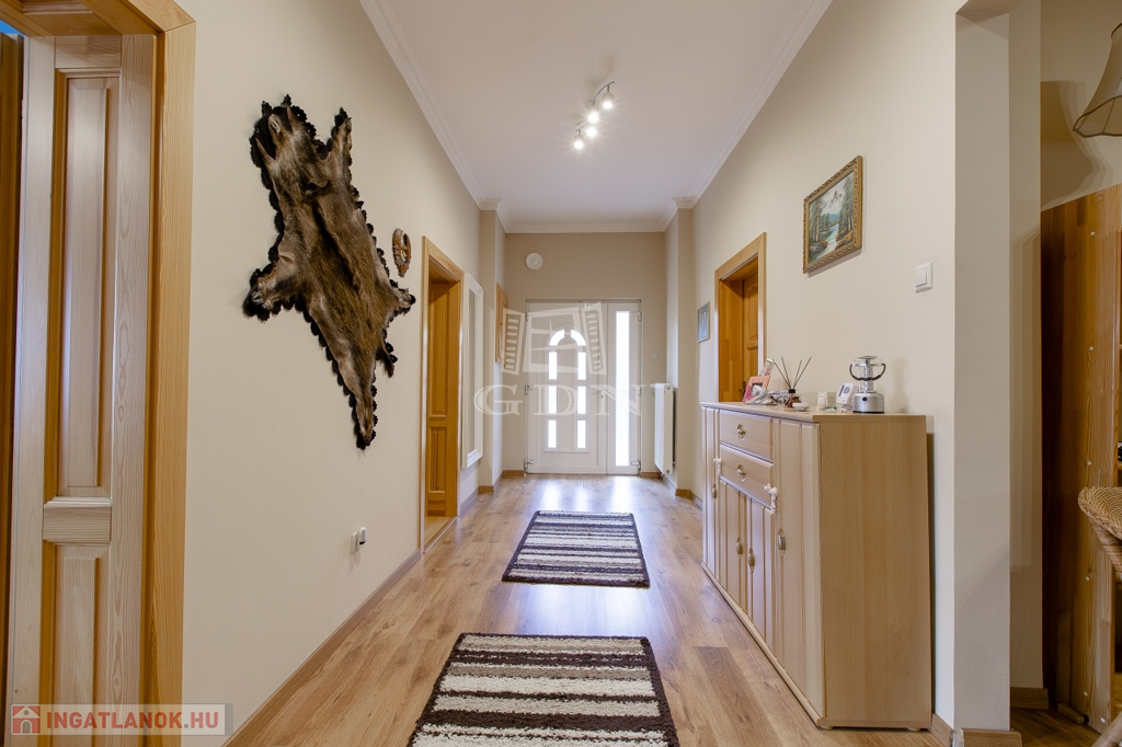 Belsőterek rendkívül ötletesen és ízlésesen vannak berendezve, gépesített IKEA konyhabútor, számos beépített gardrób, illetve cipősszekrény, gépesített mosókonyha áll rendelkezésünkre. Kikapcsolódásért nappaliban házimozi rendszer, az udvaron pedig fedett kerti konyha (épített grill, kemence, bográcsozó) és wellness (szauna, hatalmas jakuzzi) részleg áll rendelkezésünkre.