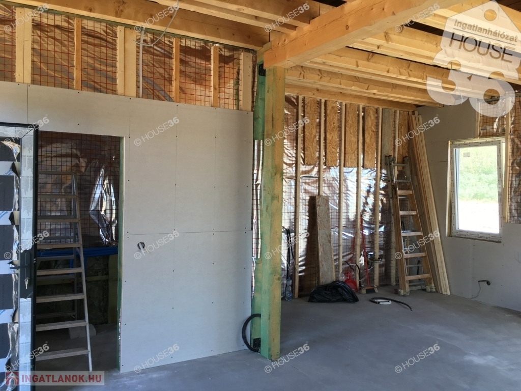 - Fa szerkezetes, látszó gerendás belső mennyezet kialakítással