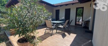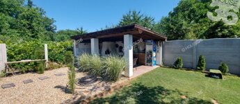 -burkolt 26 m2-es terasz, 12 m2-es melléképület + sütögető, bográcsozó, épített kemence