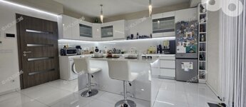 -magasfényű konyhabútor (szigettel), Gorenje típusú beépített gépekkel