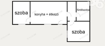 Lakótér: 55 m2(bruttó)- 2 szoba, konyha étkezővel