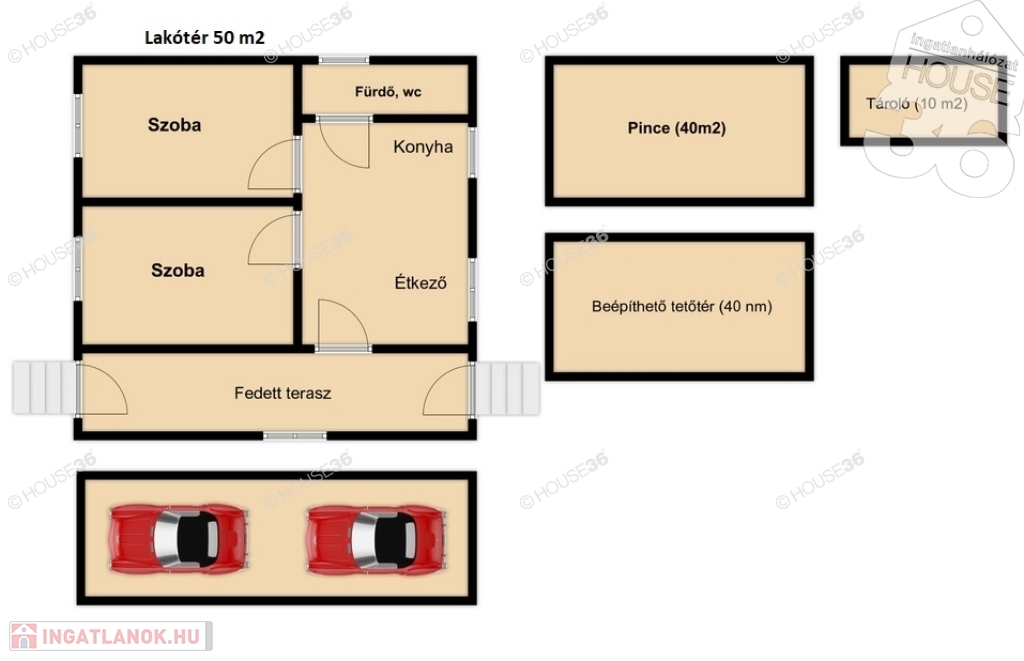 - 50 m2 lakóingatlan (gazdasági épület)