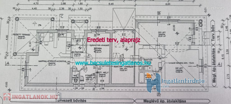 A telken korábban egy kb. 140 m²-es ház és üzlet alapja készült el, ám csak az üzlet épült fel. A meglévő struktúra emiatt bővíthető, de igény esetén akár egy új családi ház is építhető, vagy a jelenlegi épület felújítható, átalakítható.