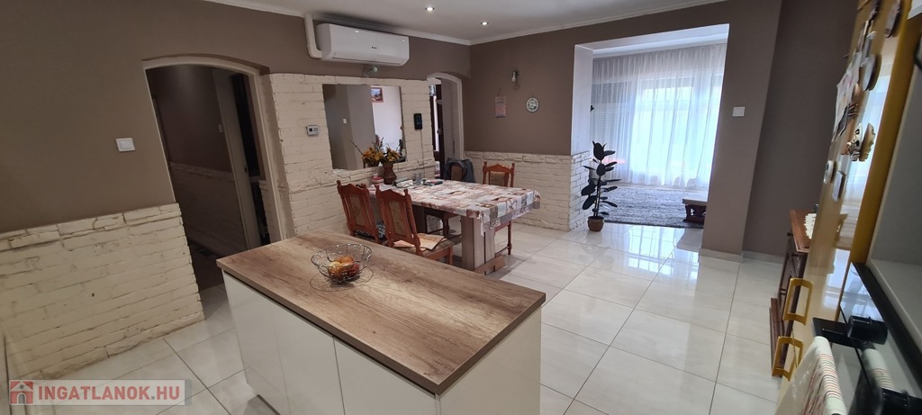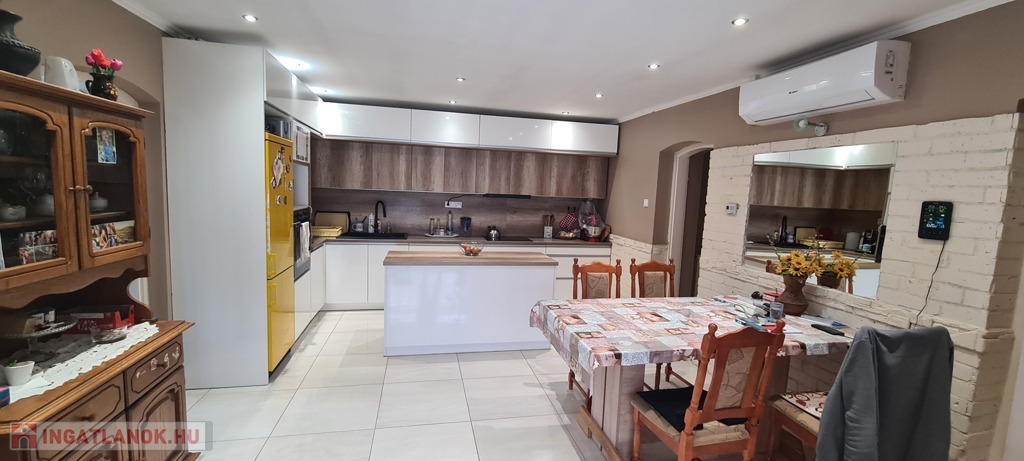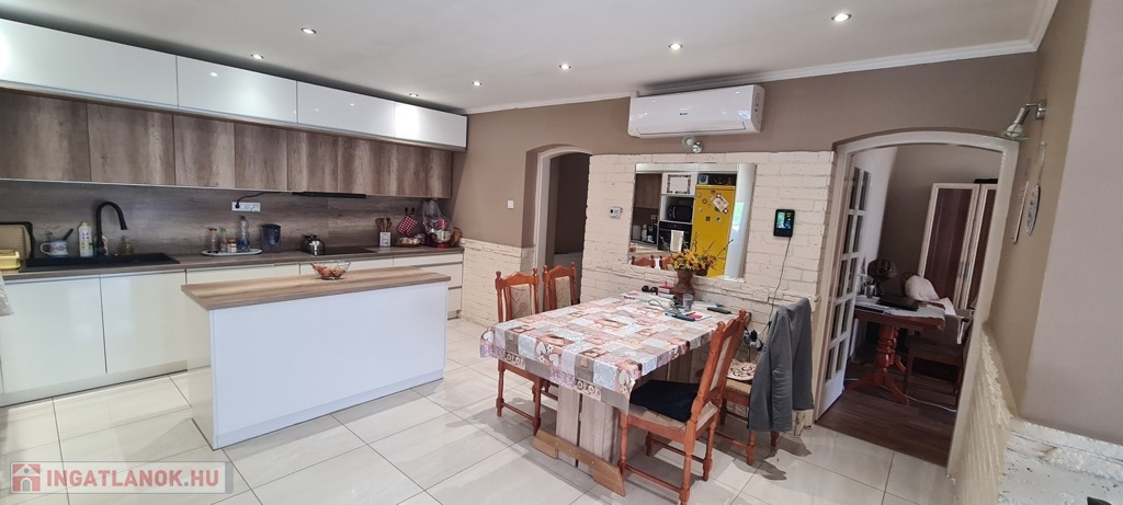 Eladó Kótajban egy jó állapotú, hangulatos családi ház nagy telekkel. A ház három szobával, nappalival, egyedi gázfűtéssel rendelkezik, modern műanyag nyílászárók kerültek beépítésre. A konyha gépesített, beépített bútorokkal, a nyári melegben klíma biztosítja a kényelmet. A házhoz tartozik egy 60 m²-es fedett terasz, valamint egy 30 m²-es, 1,3–1,5 méter mély medence, ami tökéletes a nyári kikapcsolódáshoz. A 2623 m²-es parkosított telken díszfák, térkő burkolat, elektromos kapu, szalonnasütő, filagória és egy gépesített nyári konyha is helyet kapott. Az udvarban kétállásos könnyűszerkezetes garázs található. Az ingatlan csendes, aszfaltozott utcában helyezkedik el, kiváló választás családoknak vagy azoknak, akik nyugodt, igényes környezetre vágynak. Ár megegyezés szerint. Érdeklődni a megadott elérhetőségen lehet.Az ingatlan azonosítója: 97993Érdeklődni: +36303275386 Az ingatlan azonosítója: 97993 Érdeklődni: +36303275386
