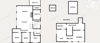 Extrák: utcafronti garázs, udvari kocsibeálló 2 autónak, szaletli az épület végében, valamint melléképületek.