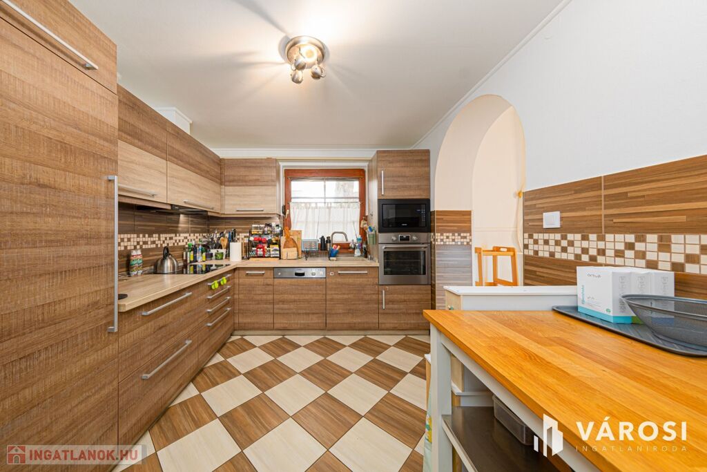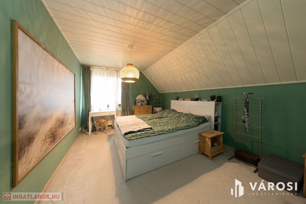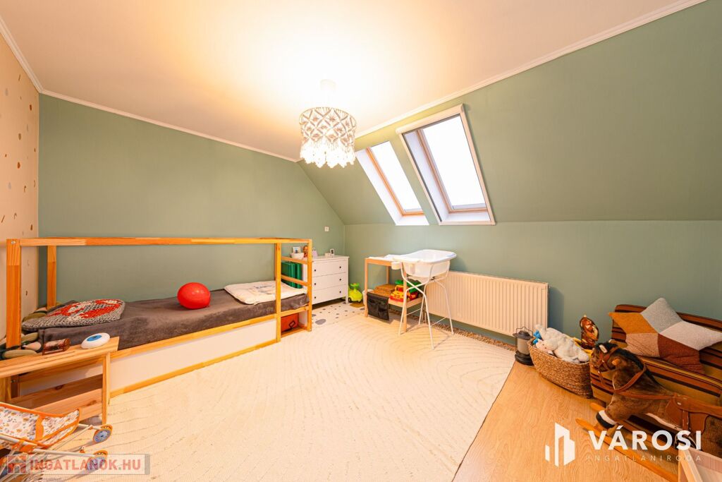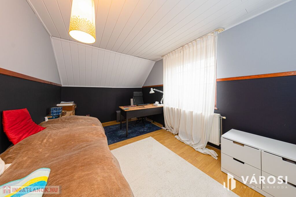 Makó kertvárosában hőszigetelt, kétszintes családi ház optimális méretű kerttel eladó. A telekméret 637 négyzetméter, a hasznos lakótér 160 négyzetméter a mellékelt alaprajz szerinti elrendezésben a tetőtérben további beépítés lehetőséggel. Mindkét lakószinten radiátoros fűtés, a fenti szinten plusz klíma biztosítja a kellemes hőérzetet. A ház rendkívül vastag falakkal rendelkezik, valamint 10 cm külső hőszigeteléssel, így a hőtartó képessége kiváló. Fűtését gázkazánról, vegyes tüzelésű kazánról is működtethetjük, de a klíma is besegíthet akár a napelemes rendszerről. A napelemes rendszer 5 kW teljesítményű. A ház terei kényelmes méretűek, a szobák elrendezése a mai igényekhez optimalizált.