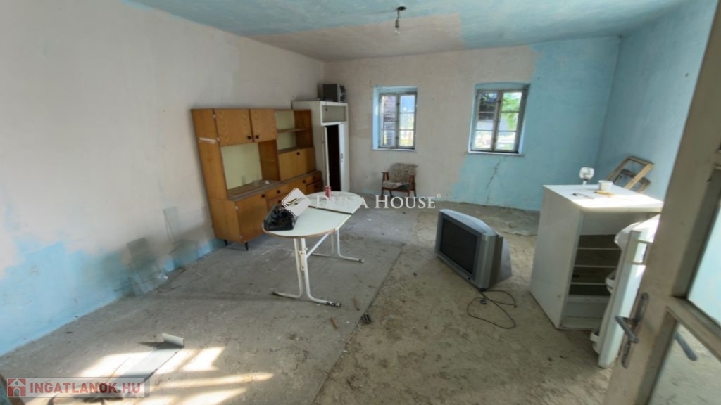 A telek mérete 2953 nm, a vályog építésű ház, teljes felújítást igényel.