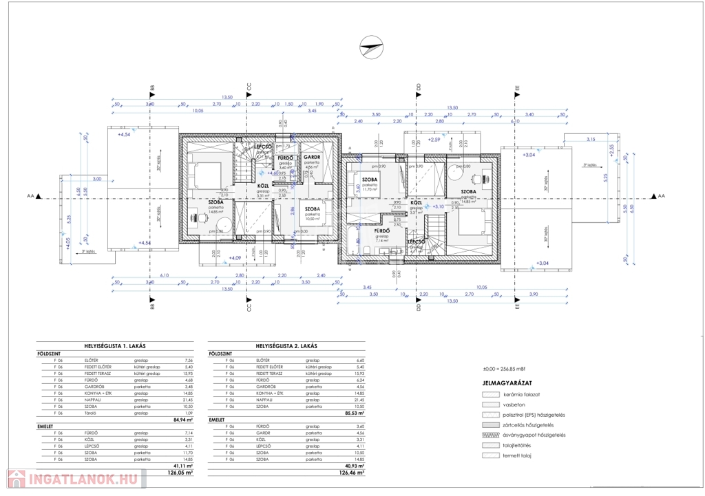 -Az ingatlanok dupla fallal érinkeznek, közötte 15cm-es szigeteléssel