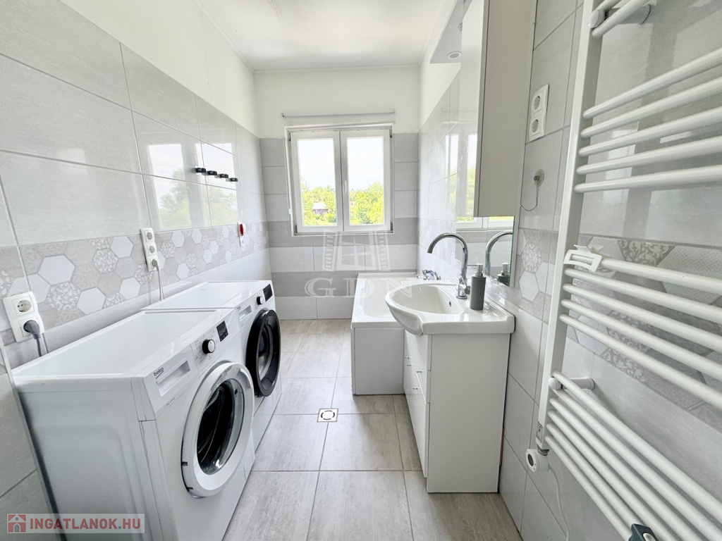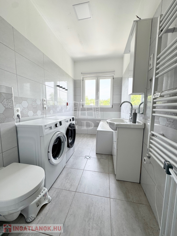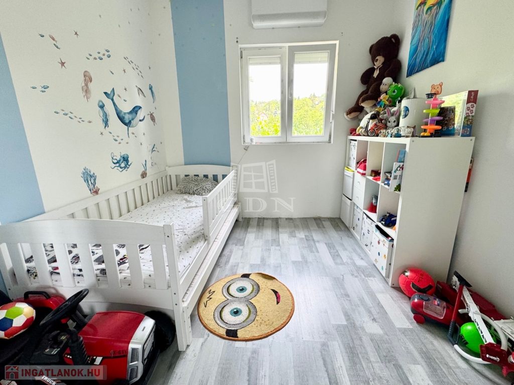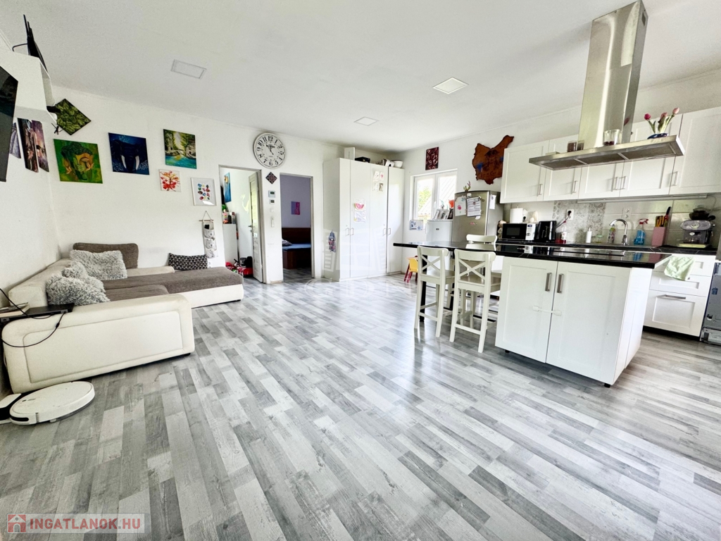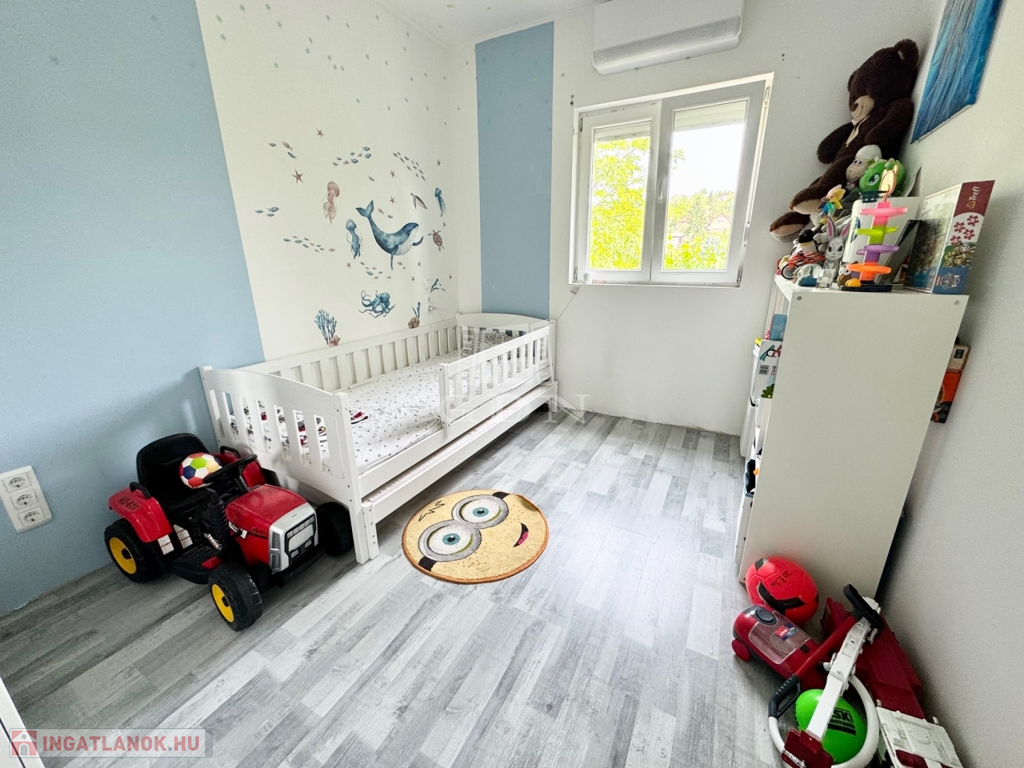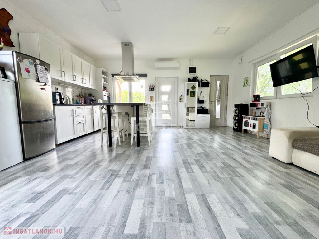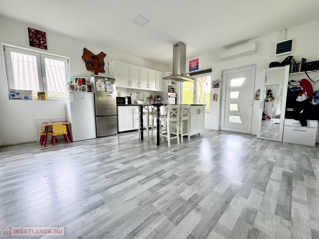 In Mogyoród, close to Budapest, in a quiet side street, about a 10-minute walk from the center of the settlement, on a 700 m2 plot with all utilities, built in 2022, with a steel frame, (lightweight) 10 cm dryvit and 15 cm rock wool insulation, 2-storey, (basement + living space) with a front garden, walk-around, 66 m2 usable living area, living room + 2 bedrooms, American kitchen, terrace, sunny-bright, facing SE and S-W, low-maintenance, H-tariff metered heat pump heating, room-controlled underfloor heating, in new condition, air-conditioned family house, with built-in, mechanized kitchen, suitable for 2 cars, surface parking within the plot, and regularly maintained garden, for sale. The entire basement is located under the building, which has been designed so that it can be converted into a separate apartment. In addition, there is an underground cellar on the plot, which is excellently suitable for a wine cellar or vegetable storage. The area is safe, its infrastructure and transportation are excellent. Within easy reach: School, (Szent László Elementary School), Kindergarten, shopping, sports opportunities. Volán bus stop 320, 321, 324, 325 and 326 is 5 minutes' walk away. M3 motorway 5 minutes away. Due to the property's closed garden classification, it is currently not eligible for credit. (Declaration of a residential building is in progress) We recommend it to all those who would like to live in a pleasant, human-scale family house, away from the bustling bustle of the city, who want cleaner air and peace, but would still like to stay in the Budapest area. For further details and viewing, I look forward to your call! EA