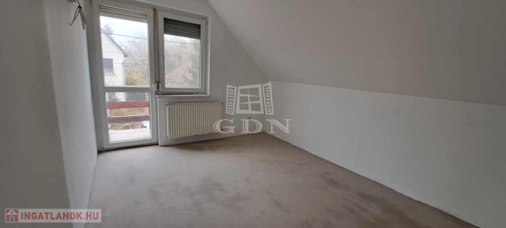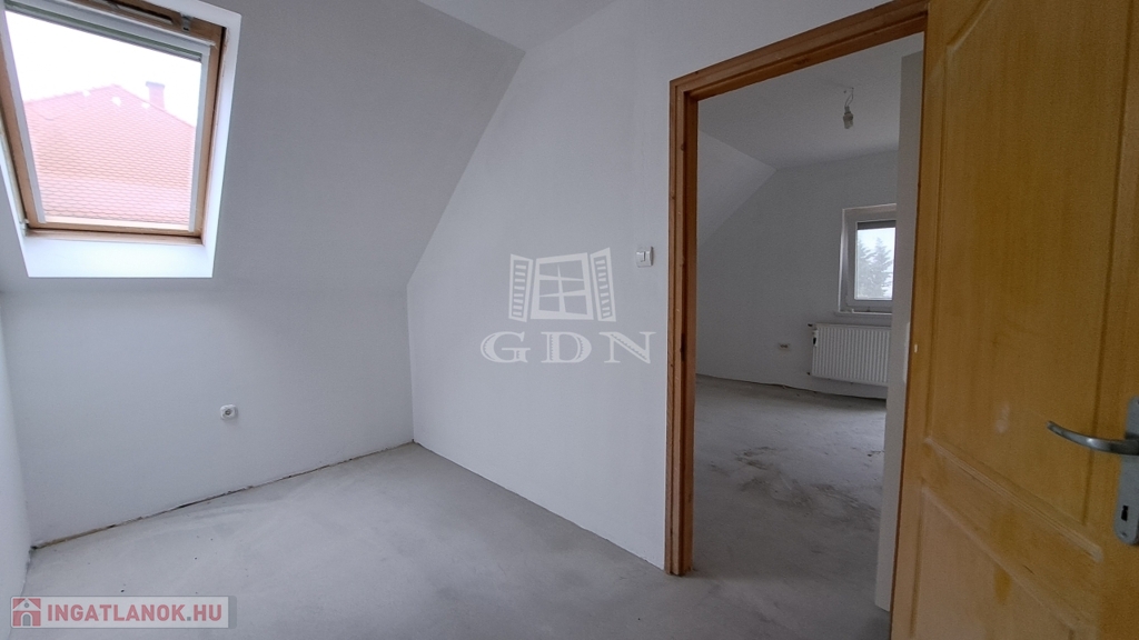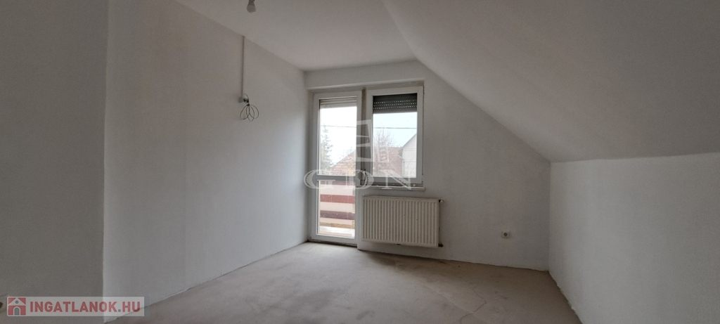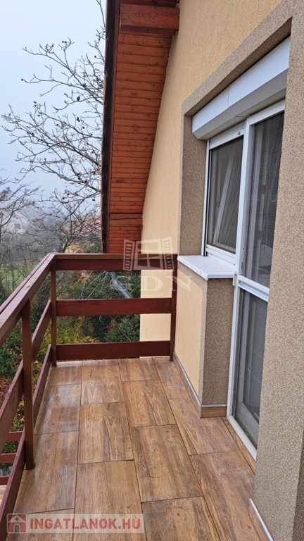 Az emelet két hálószobát, egy gardróbszobát, fürdőszobát és egy erkélyt kínál.
