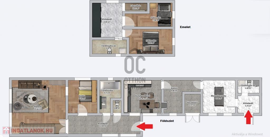 - 2 szintes, 3 fürdőszobás.