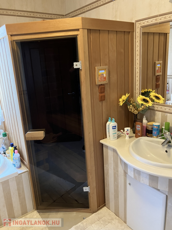 Az ingatlanban nappali, konyha-étkező, 3 szoba, 2 fürdőszoba káddal, zuhanyzóval, szaunával, nyitott és fedett terasz, házból is megközelíthető 2 állásos fűtött garázs található.