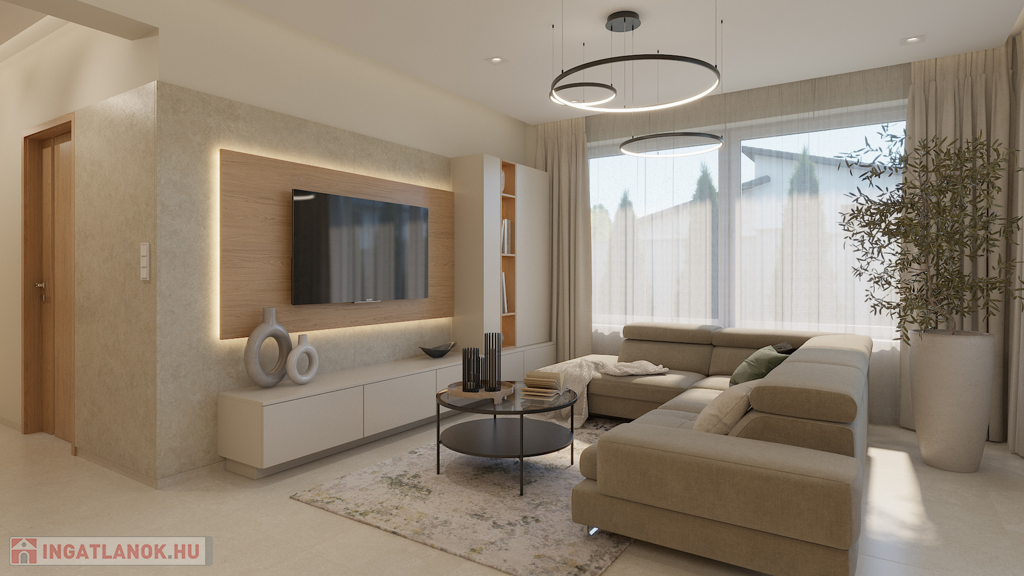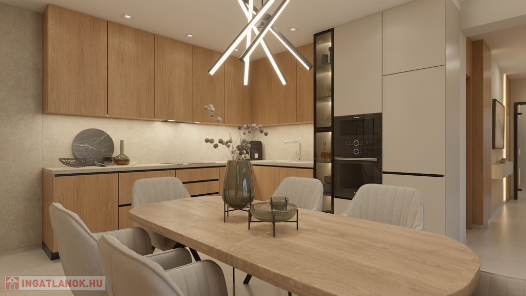 Beépített egyedi gépesített konyhabútort, előszoba fal, szobák teljes bútorzatát és felszereltségét ,(lámpák, csillárok energiatakarékos LED világítás), kerítés.  Ide már csak a saját személyes dolgokat kell hoznia!
