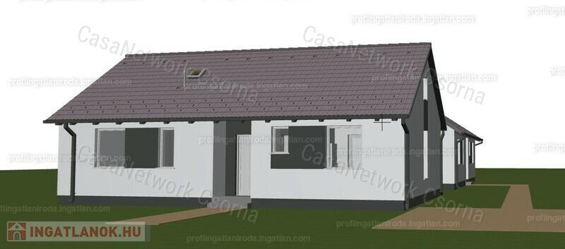 Sáv alap, 30-as porotherm tégla, 15 cm szigetelés, három rétegű műanyag ablakok, külön fürdő, wc, napelem, padlófűtés.