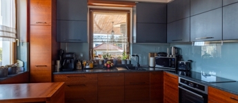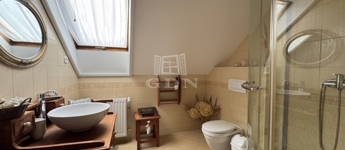 A hőszigetelt, 3 rétegű üvegezésű nyílászárók, a magas minőségű hideg- és melegburkolatok, a dizájnos falpanelek, valamint a tetőtéri tölgy lazúros lambériaburkolat a természetes eleganciát és tartósságot képviselik.