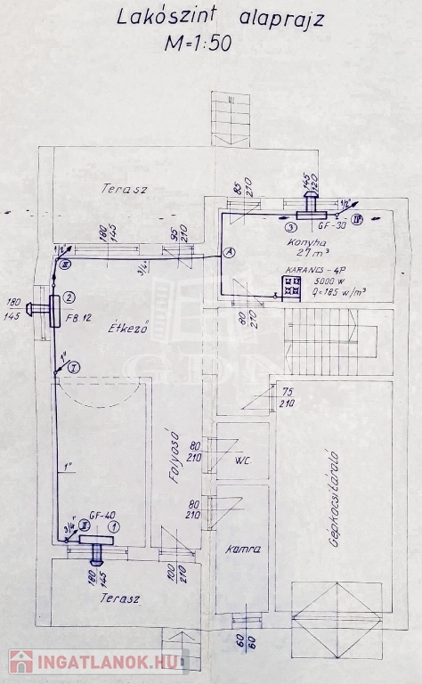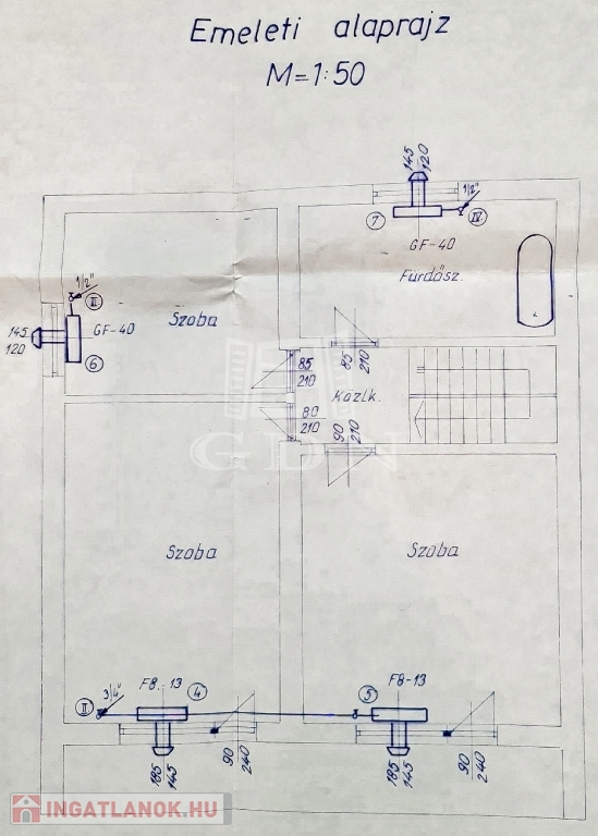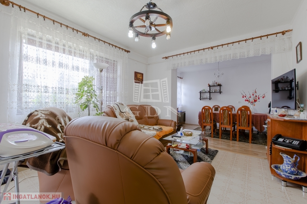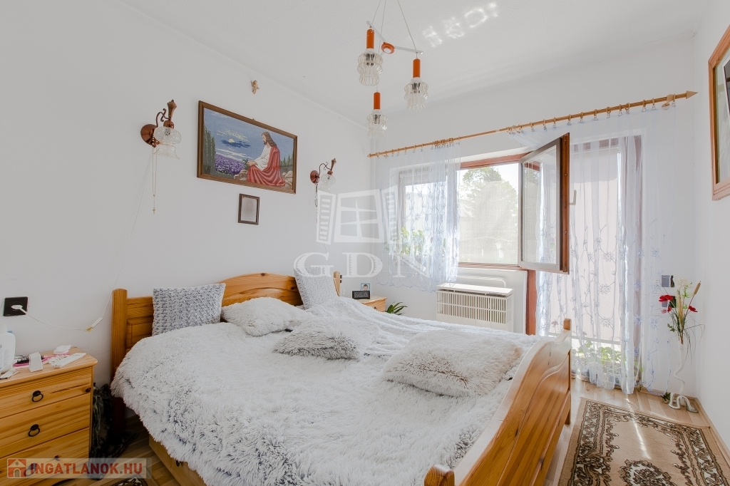 Az épület 3 szintes,1983-ban épült, beton alapra épült, 40 cm-es tégla falazattal, beton födémmel, pala tetővel és fa thermo nyílászárókkal. Ingatlan részben jó állapotú, részben felújítandó, a telek utcához közelebb eső részén helyezkedik el. Az egész épület alatt pince szint van, ahol a kazánház és táróló található. A földszinten, illetve az emeleten, egy-egy külön bejáratú lakás áll rendelkezésünkre, mind két lakásban van külön fürdőszoba, konyha, étkező, nappali és szobák is.