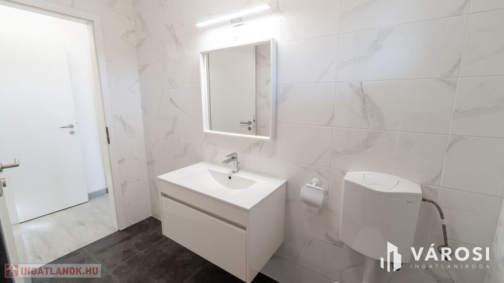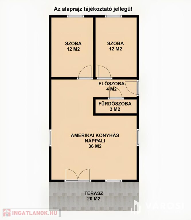 Az ingatlan elrendezése praktikus és kényelmes. A házba belépve az előszobába érkezünk, jobbról helyezkedik el 2 db 12 m2-es szoba, balról pedig egy fürdőszoba ( tusoló+wc ) valamint a tágas amerikai konyhás nappali, ahonnan kijárásunk van egy nagy 20 m2-es teraszra. A fürdőszobában kapott helyet egy 120 literes Ariston WiFi-s vízmelegítő. A ház amerikai konyhás, mely modern és praktikus megoldást nyújt a mindennapi főzéshez.