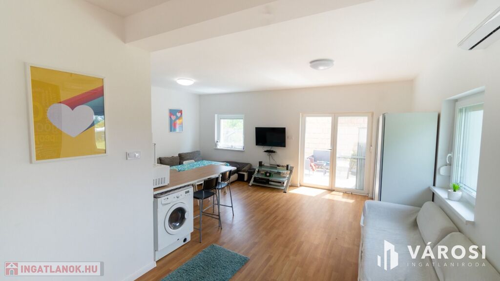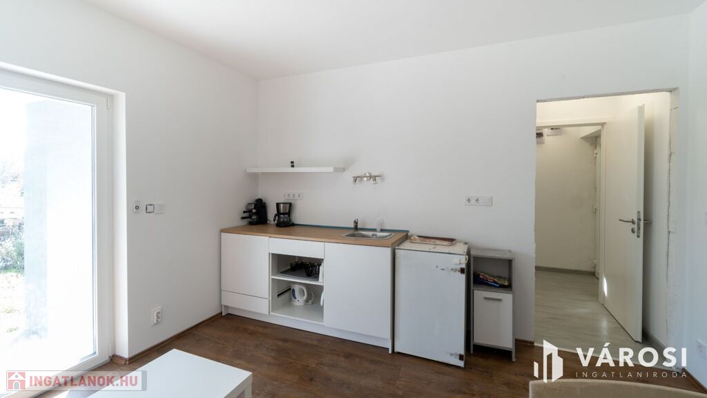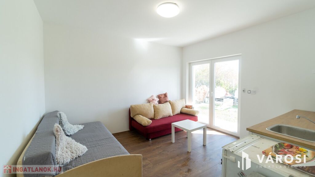 A hátsó "B" épület 2024-ben készült el. Összesen bruttó 104 m2-el rendelkezik melybe beletartozik egy 20 m2-es fedett terasz. 2 szintes épületként került kialakításra. A földszinten egy amerikai konyhás nappali és egy fürdőszoba található wc-vel. Az emeleten egy nappali, két hálószoba, valamint egy fürdőszoba wc-vel. A redőnyözött nyílászáróknak köszönhetően a napfény behatolása a lakásba szabályozható, így a főszezonban sem kell félni a túlzott hőingadozástól. A mindkét szinten megtalálható klímák és a külső hőszigetelés a maximális komfortot garantálja, így a modern kényelem egyik alapfeltétele sem marad el. A ház alacsony fenntartási költségekkel bír, így gazdaságos választás lehet az új tulajdonosnak.