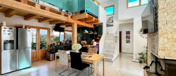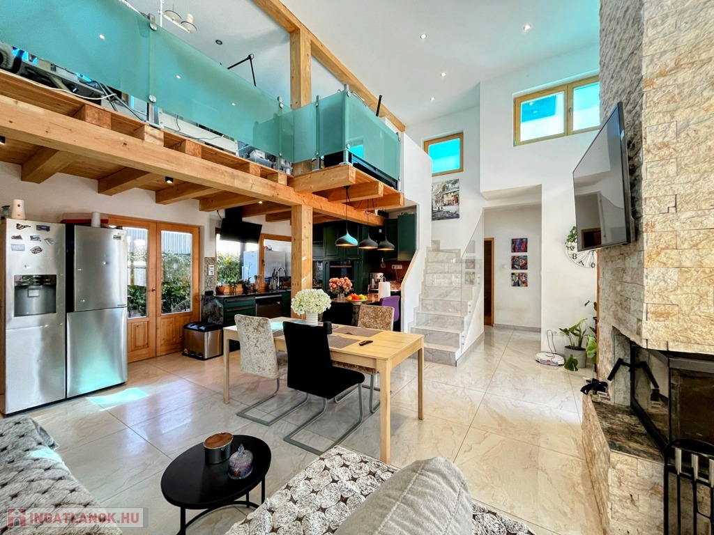 -A ház 3 halószobával, 2 füdőszobával, vendég toalettel, amerikai konyhás nappalival, valamint a galéria szinten kialakított dolgozó vagy pihenő részleggel rendelkezik.