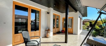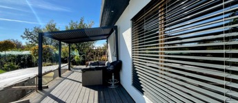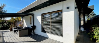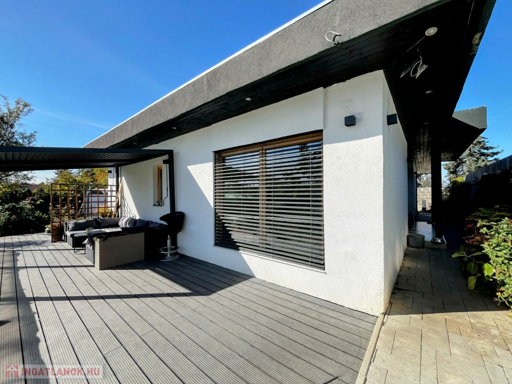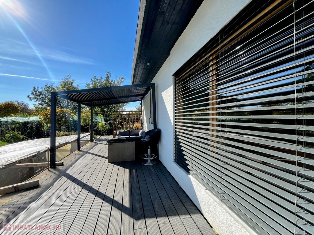 -További extrák, amikkel az ingatlan rendelkezik: kerti világítás, állítható lamellás pergola, öntözőrendszer, zsaluziák, magaságyásos veteményes és tűzrakó hely.